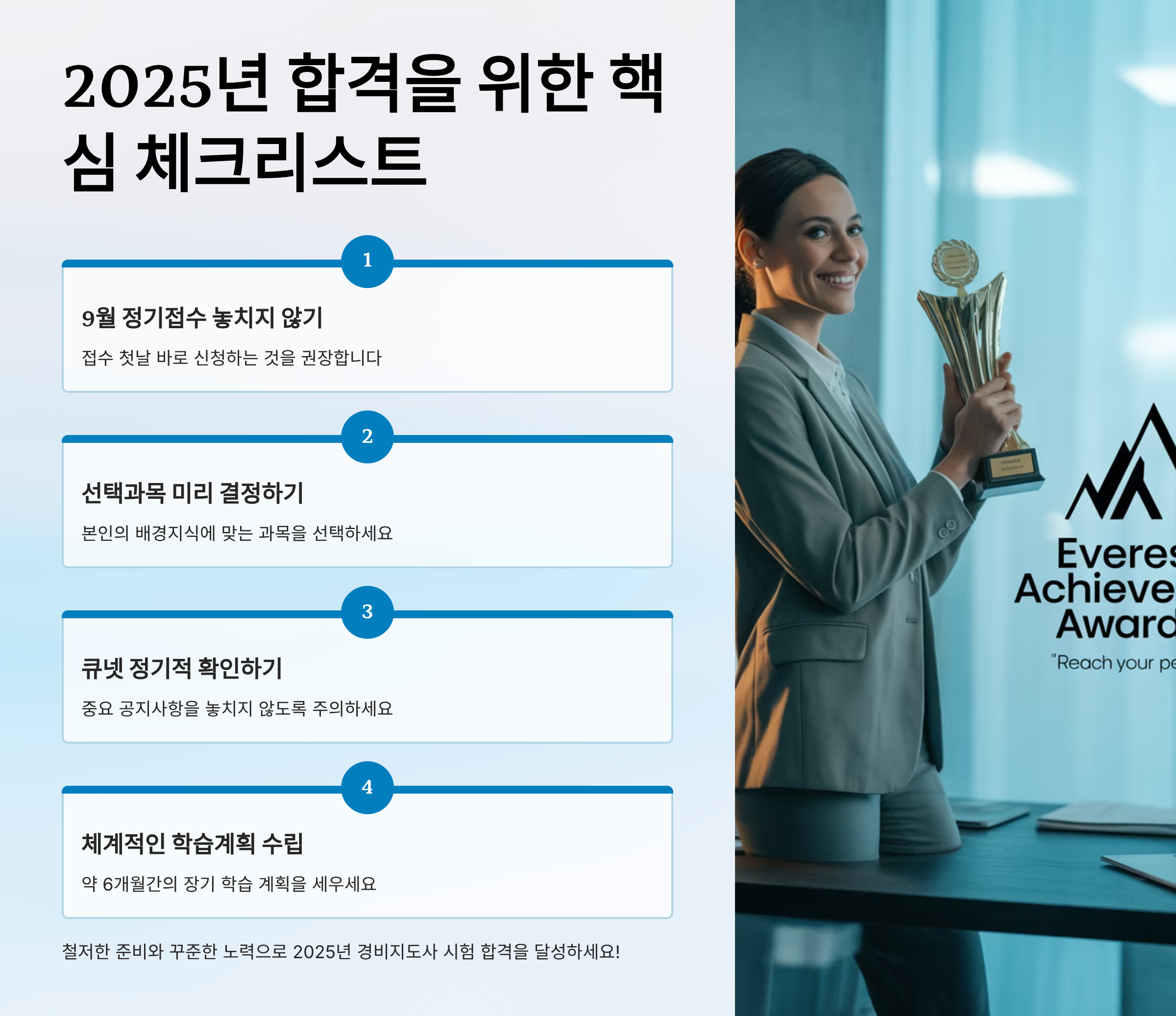 최신 정보는 반드시 큐넷을 통해 확인하고, 철저한 준비로 2025년 경비지도사 시험에서 합격을 목표로 하시길 바랍니다.